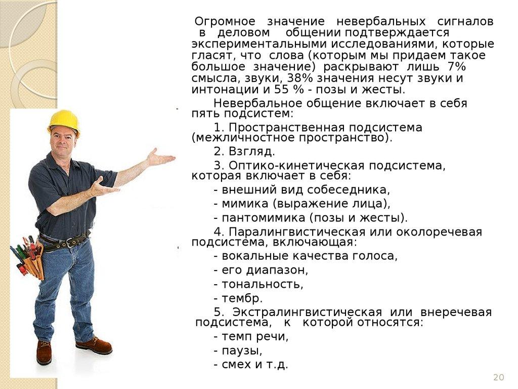 слова составляют 7%, звуки интонации – 38%, неречевое