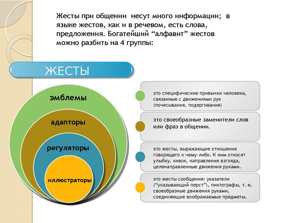 Жесты при общении несут много информации; вязыке жестов, как и в речевом, есть слова,