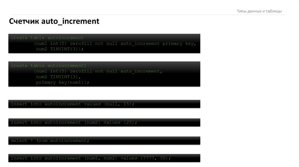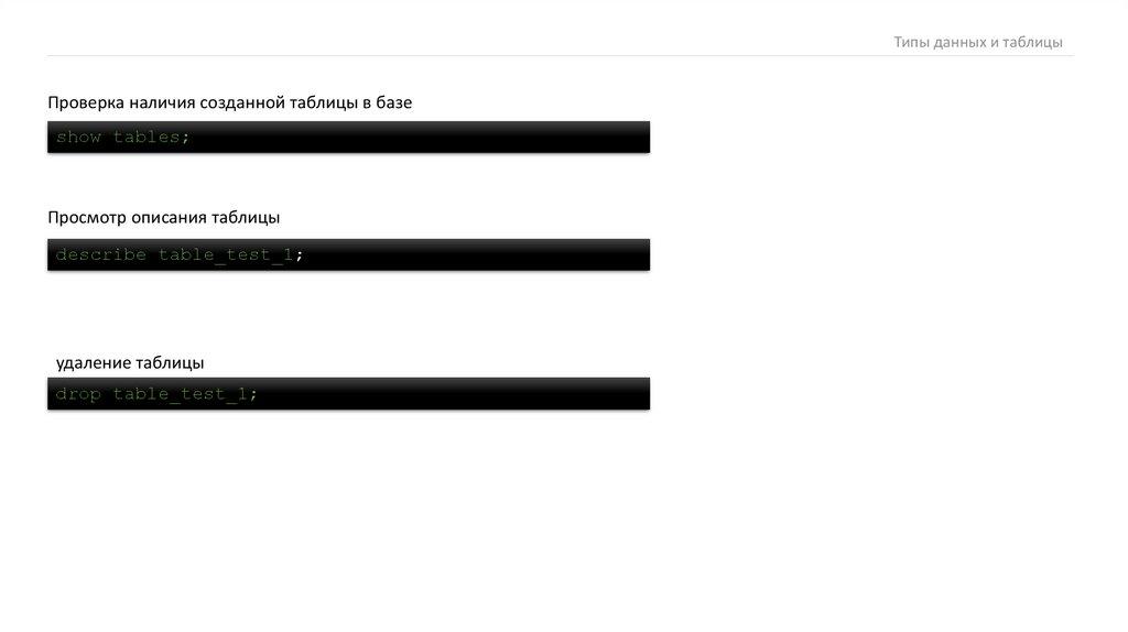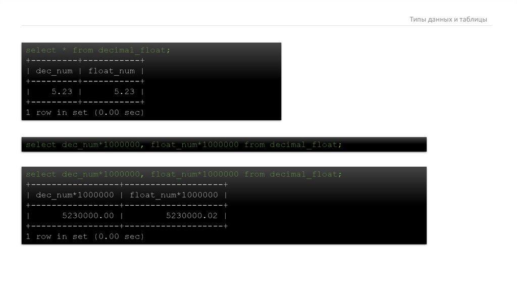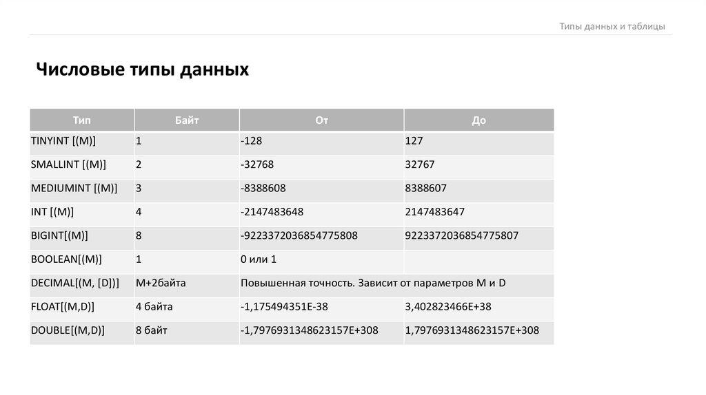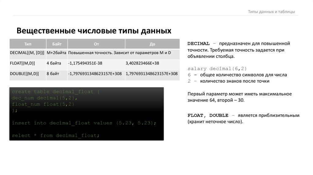 Типы данных и таблицыТипы данных и таблицы