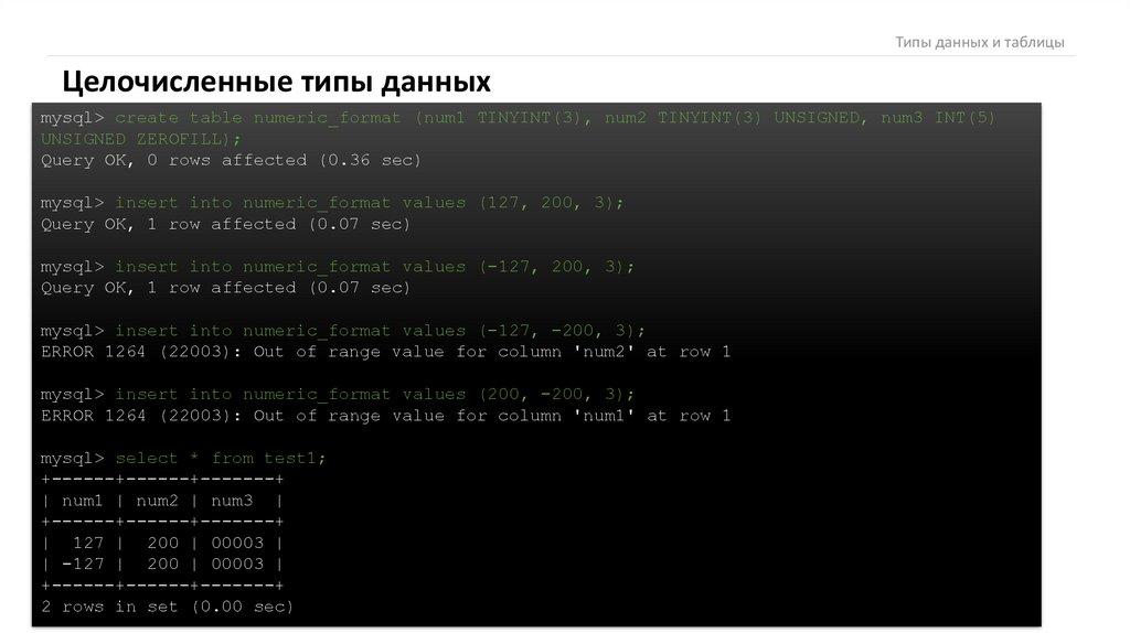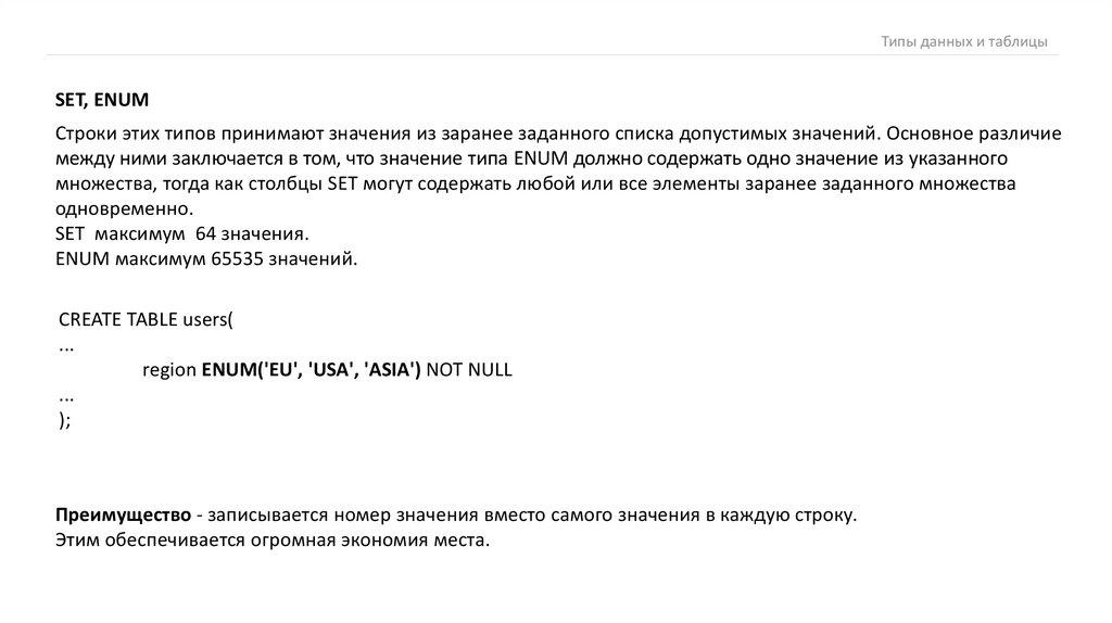 Типы данных и таблицыSET, ENUM