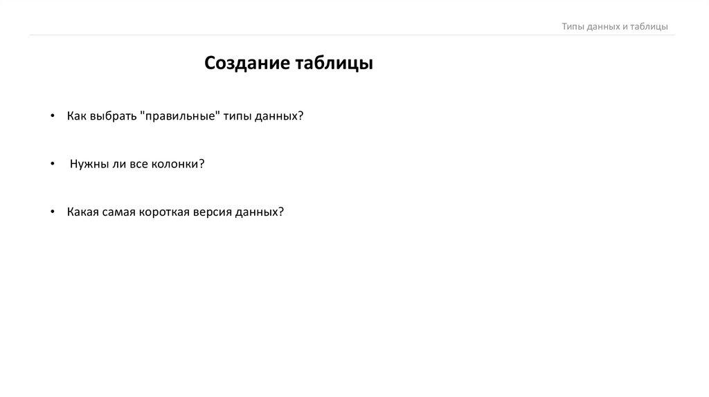 Типы данных и таблицыСоздание таблицы