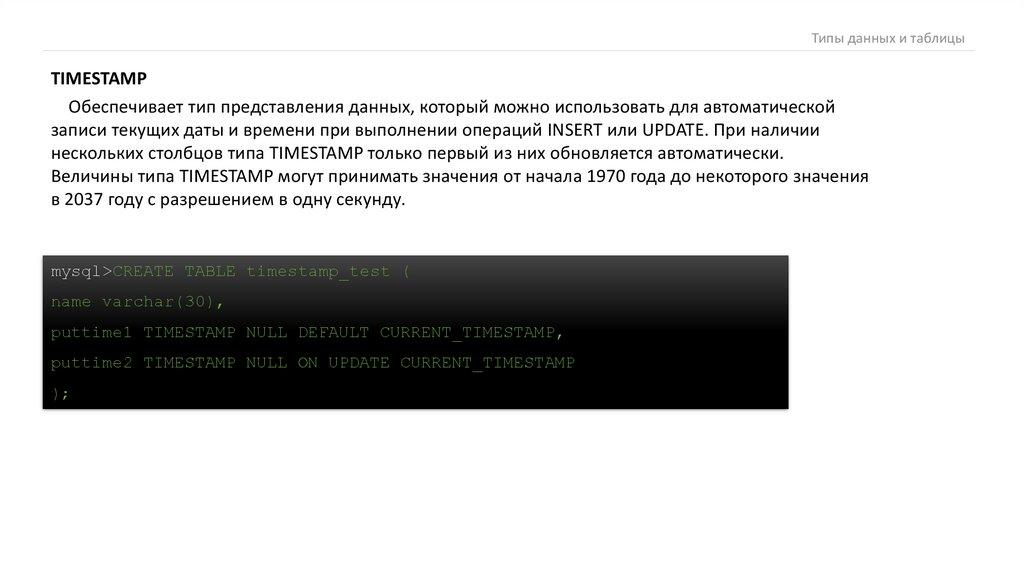 Типы данных и таблицыTIMESTAMP