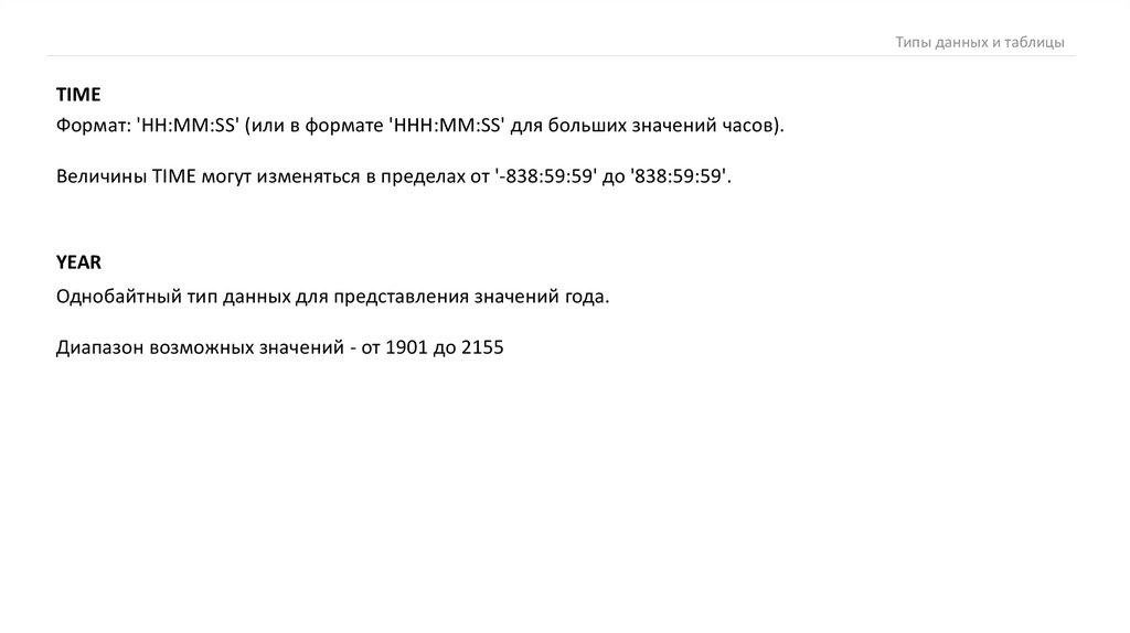 Типы данных и таблицыTIME