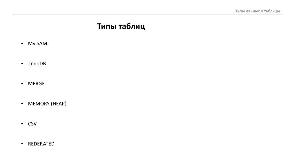Типы данных и таблицыТипы таблиц