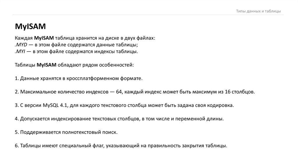 Таблицы MyISAM обладают рядом особенностей: