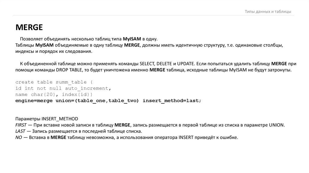 Типы данных и таблицыMERGE
