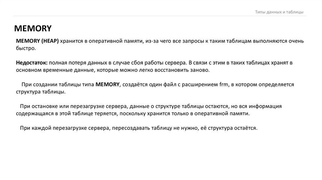 Типы данных и таблицыMEMORY