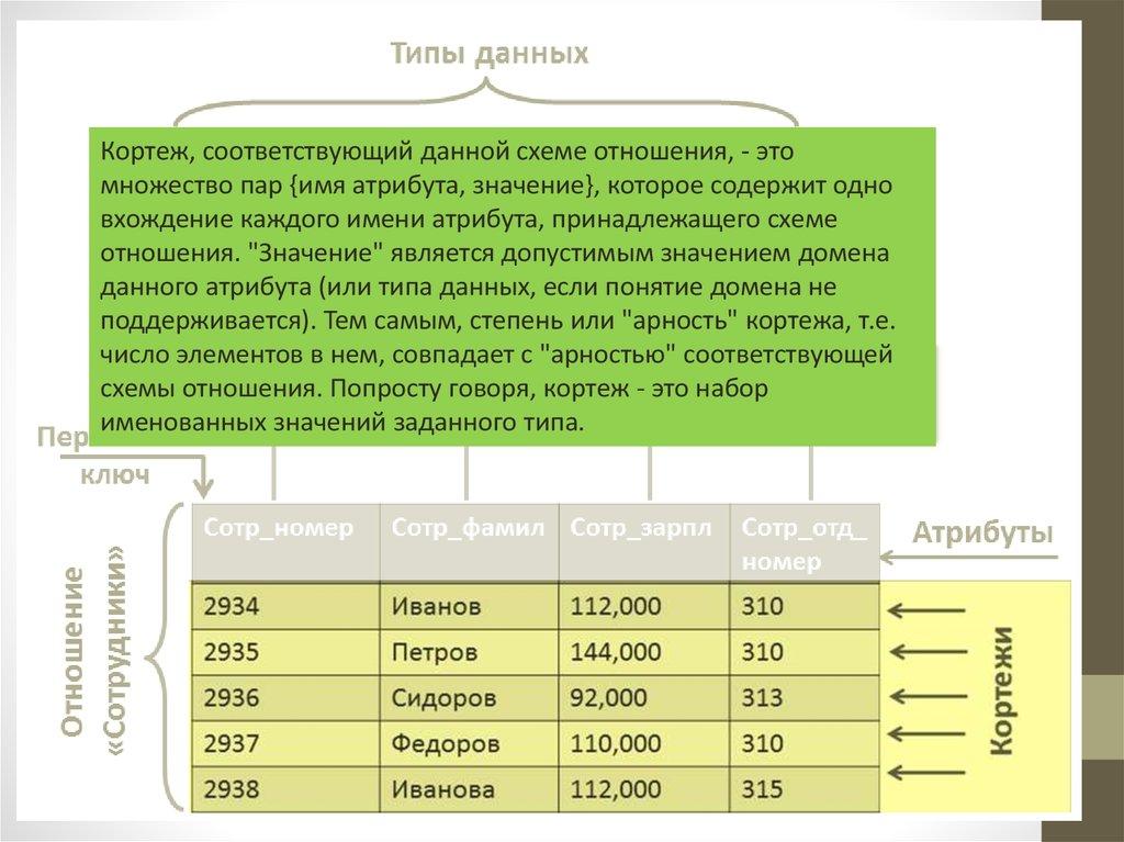 конкретный кортеж и не содержит дополнительных атрибутов.
