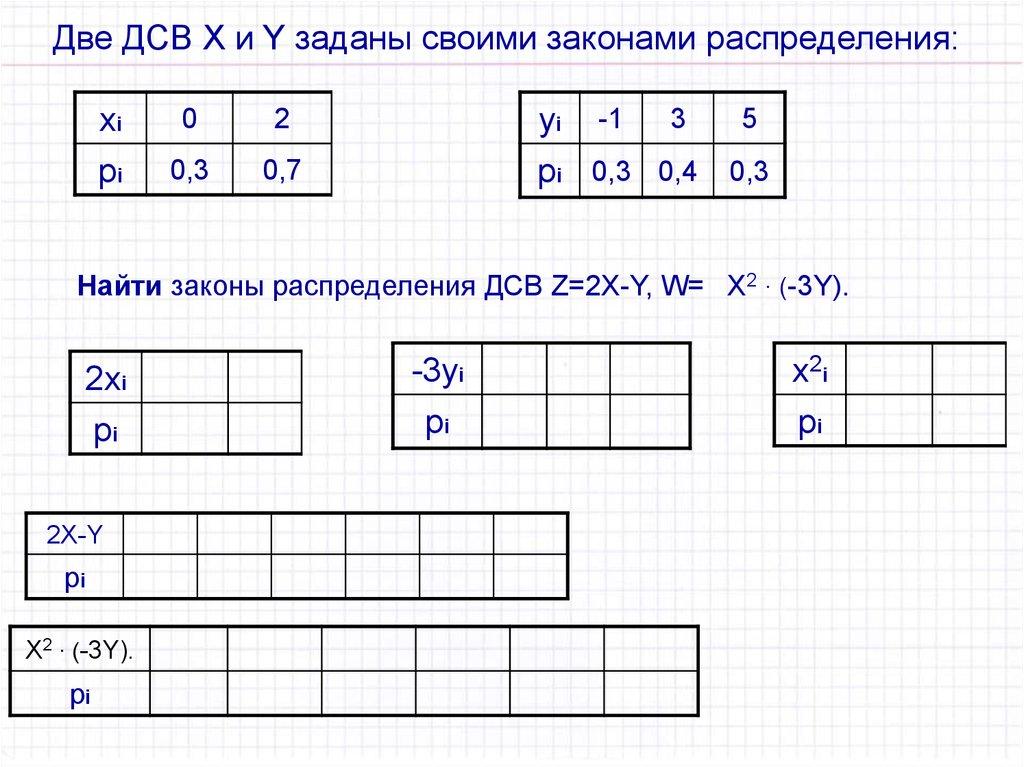Пример. Даны две ДСВ X и Y:X: