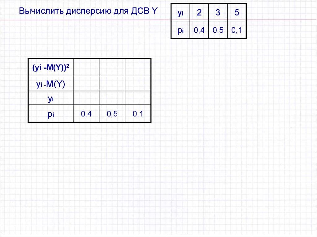 Вычислить дисперсию для ДСВ Yyi
