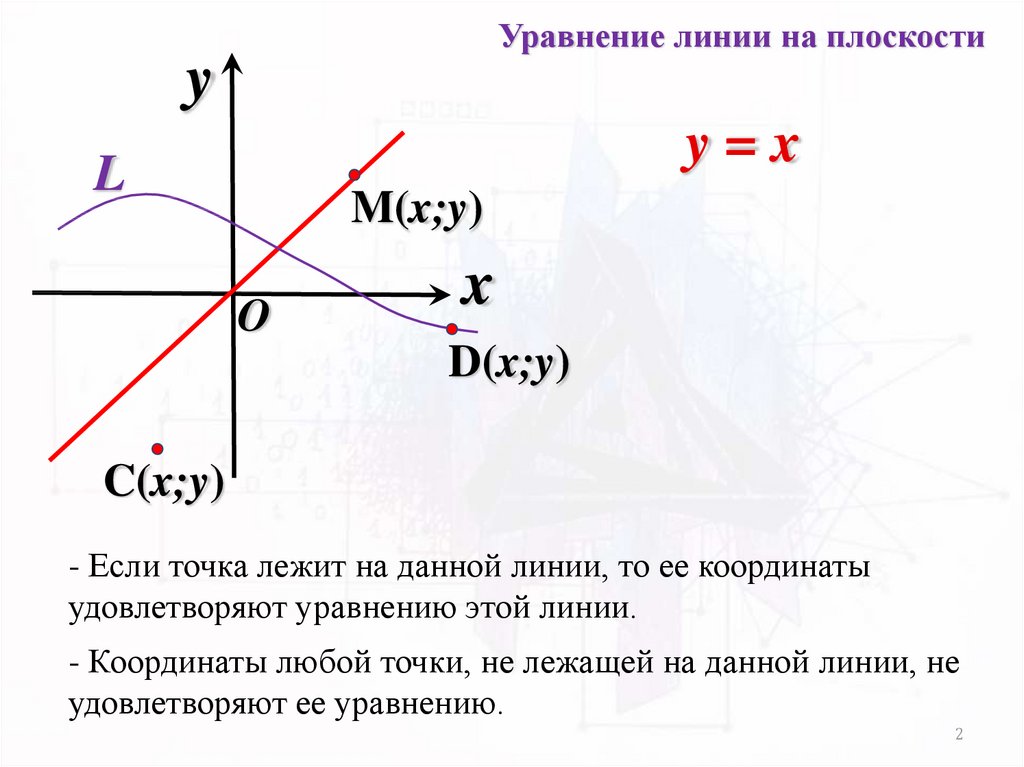 - Если точка лежит на данной линии, то ее координаты