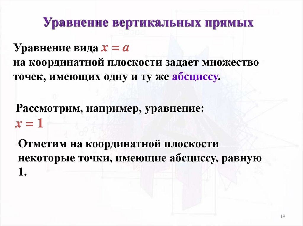 - Координаты любой точки, не лежащей на данной линии, не