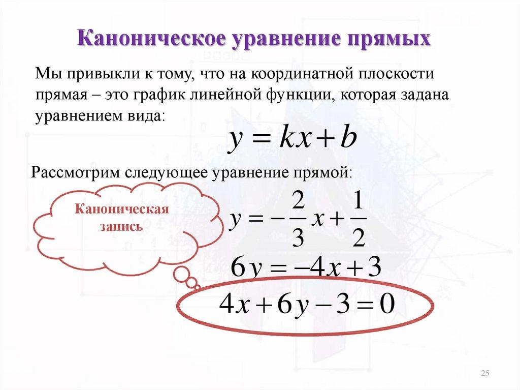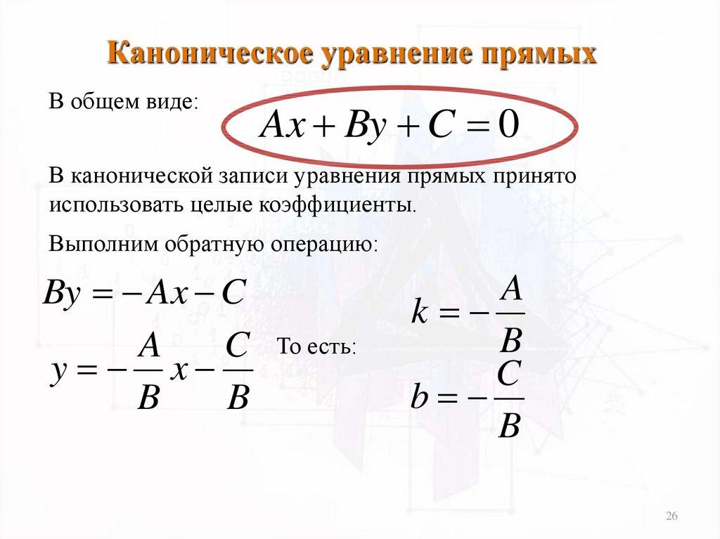 Каноническое уравнение прямыхВ общем виде: