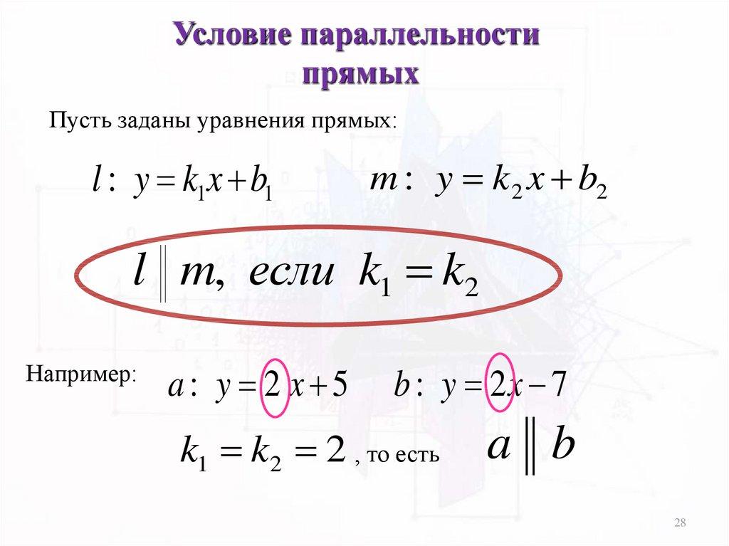 Условие параллельностипрямых