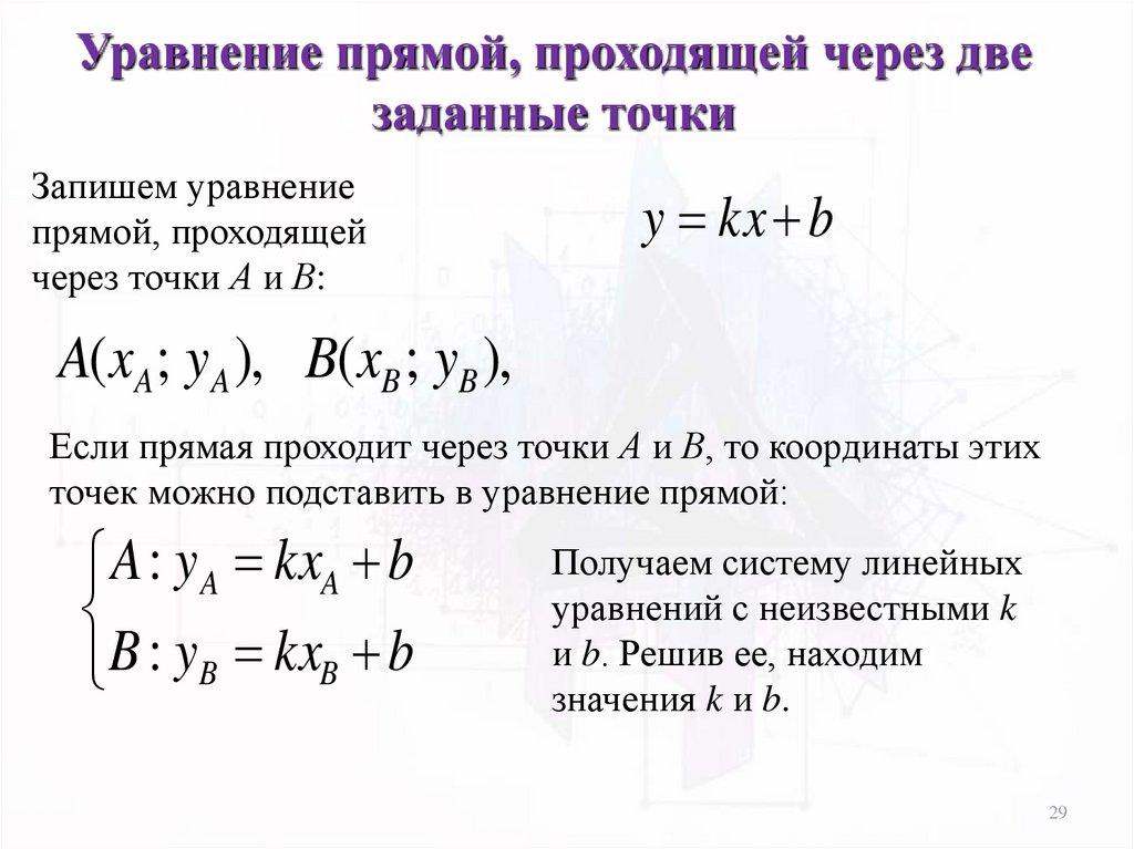 Уравнение прямой, проходящей через двезаданные точки