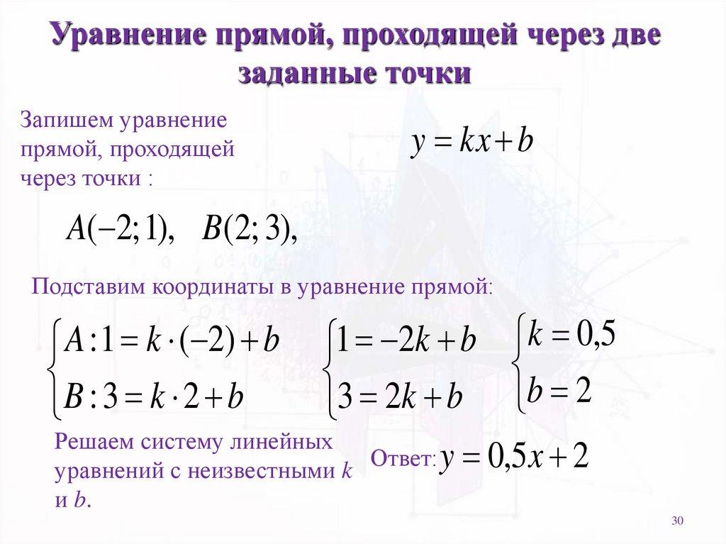 точек можно подставить в уравнение прямой: