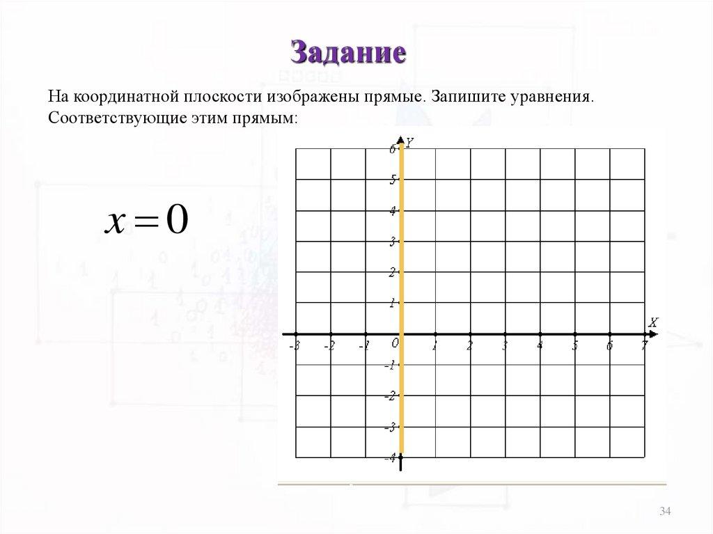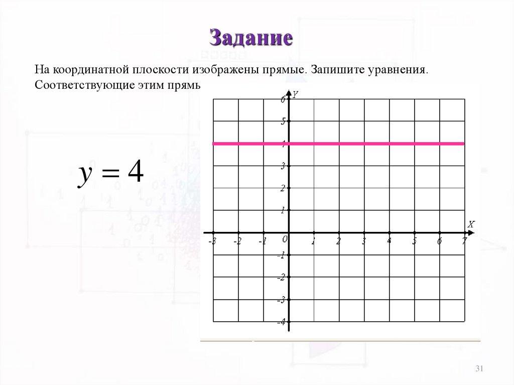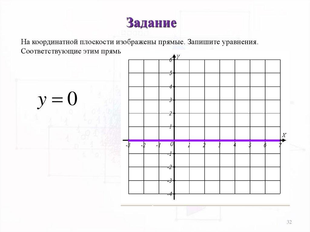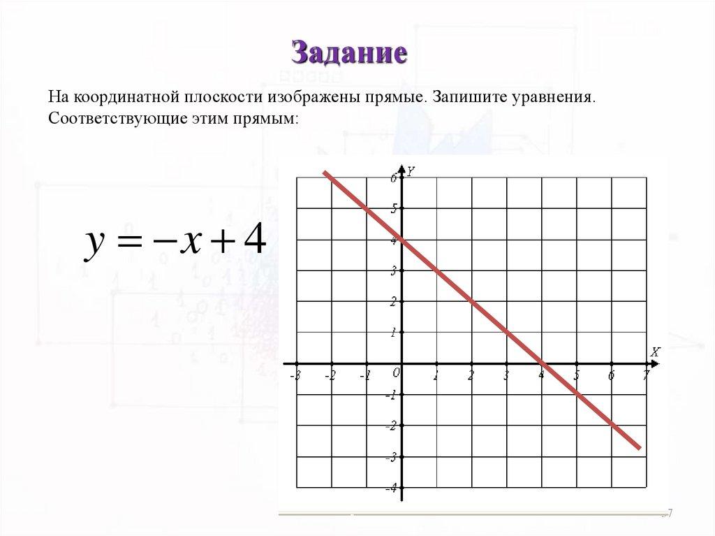 ЗаданиеНа координатной плоскости изображены прямые. Запишите уравнения.