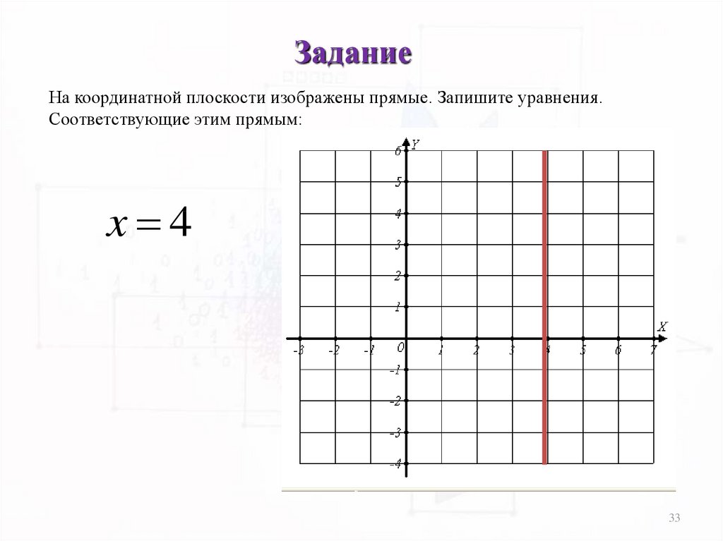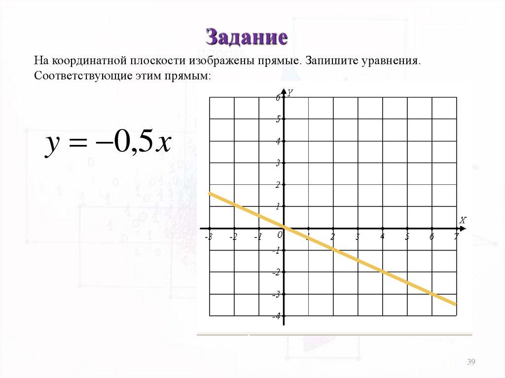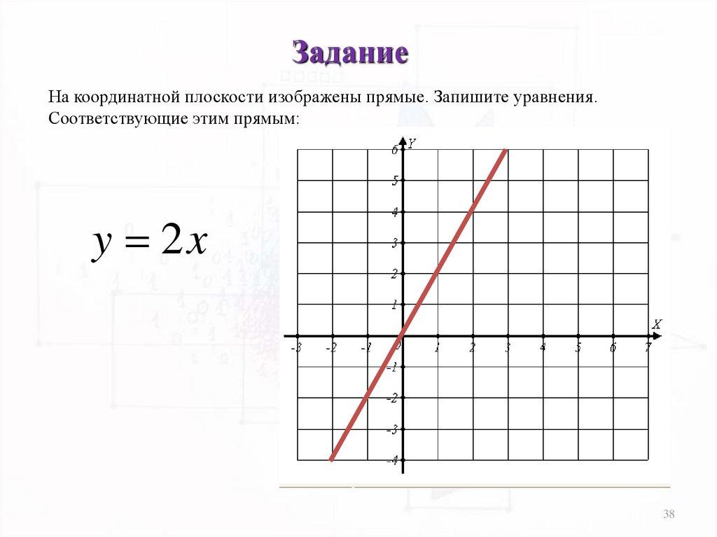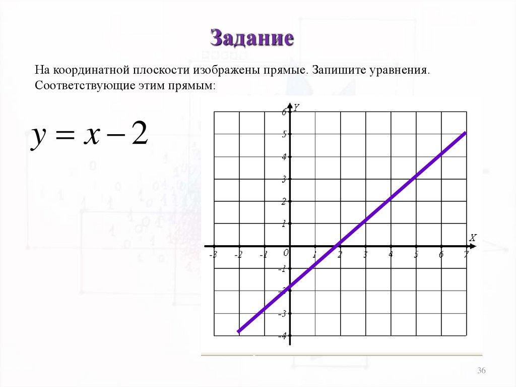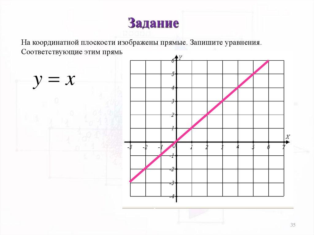 ЗаданиеНа координатной плоскости изображены прямые. Запишите уравнения.