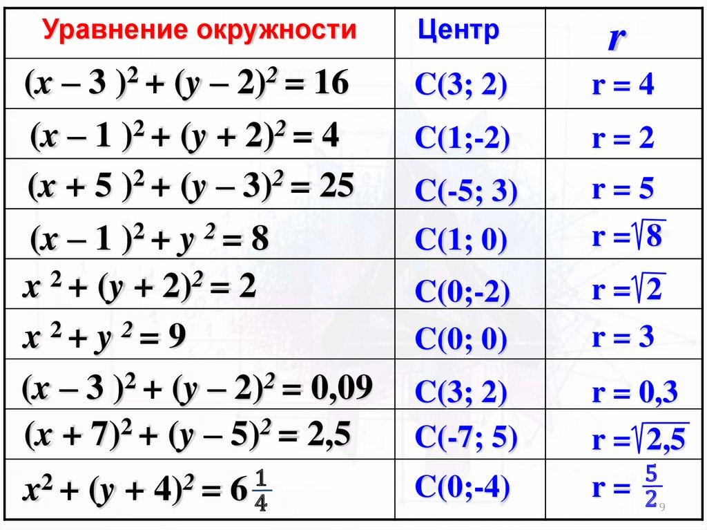 5. Уравнение окружности