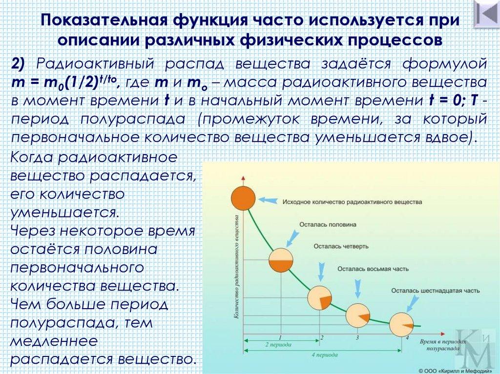 m = m0(1/2)t/tо, где m и mо – масса радиоактивного вещества