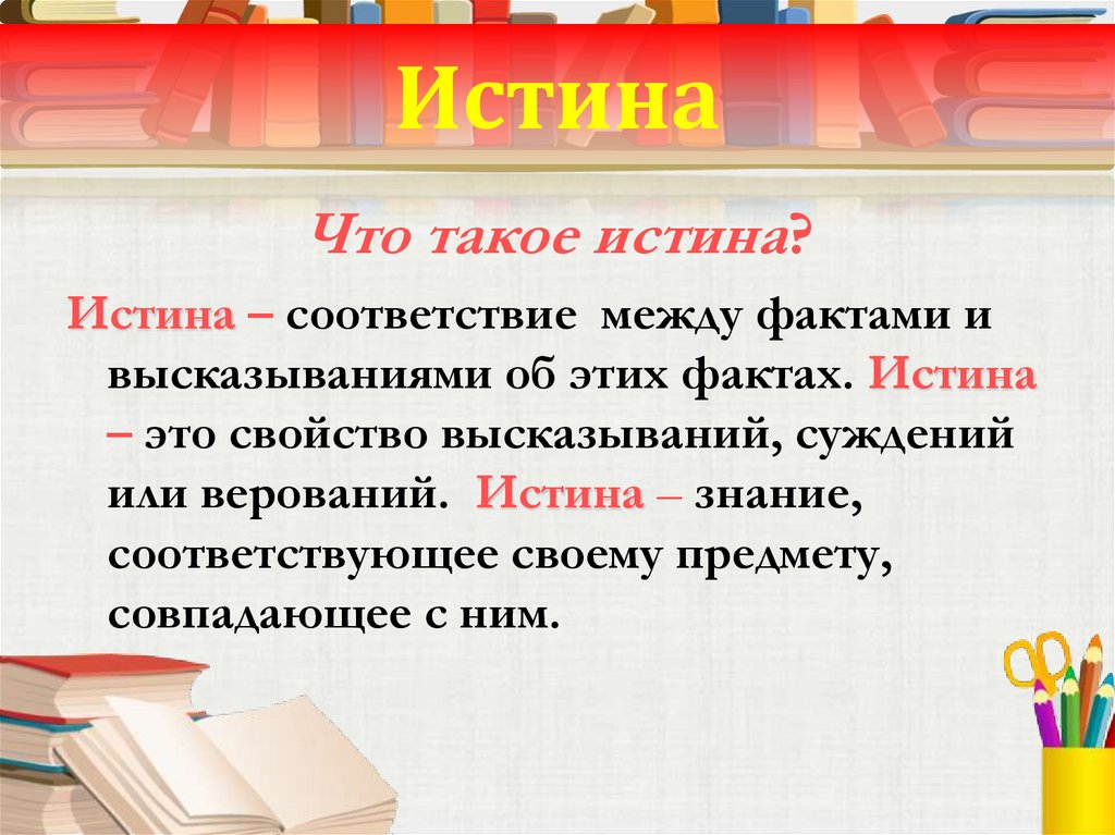 или верований. Истина – знание,