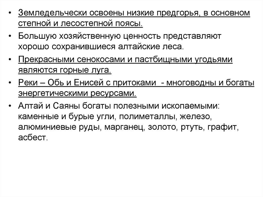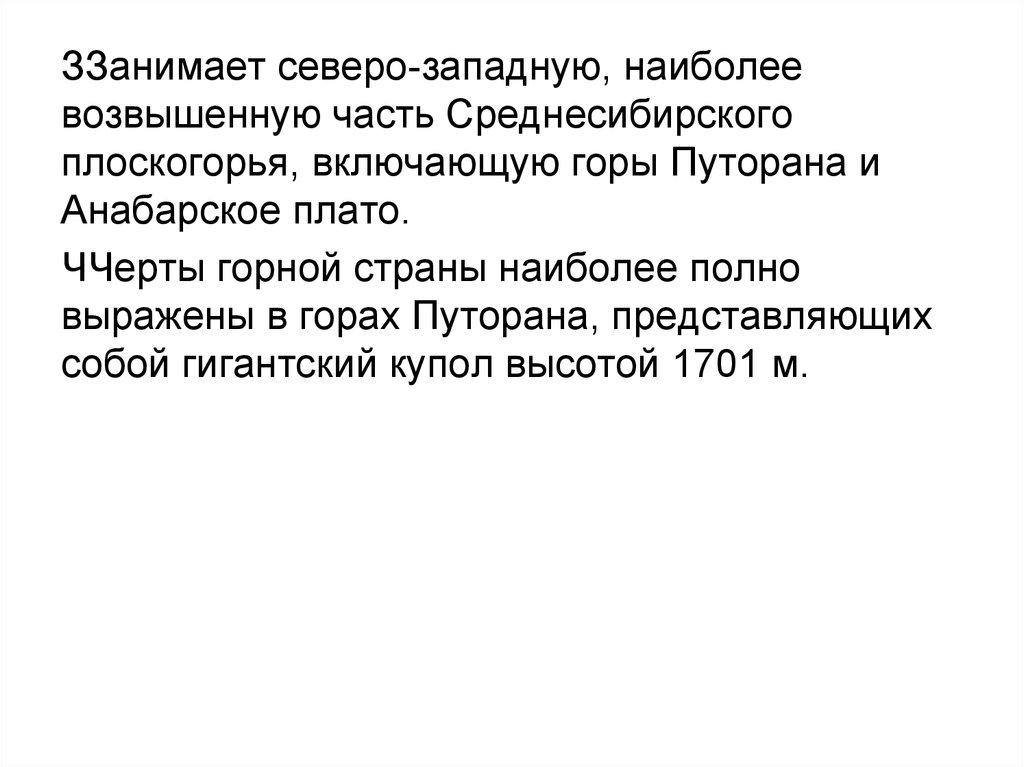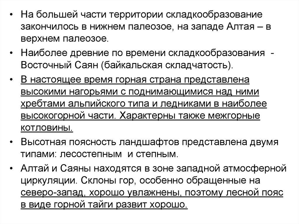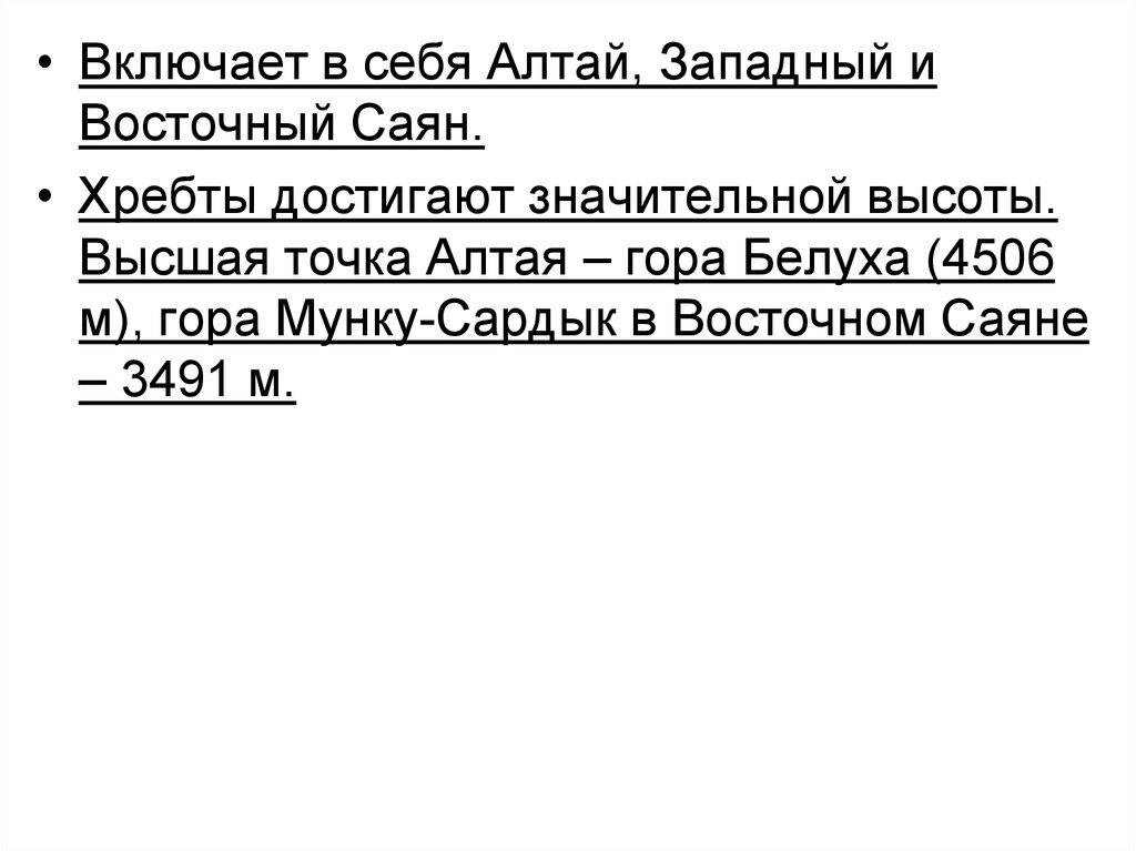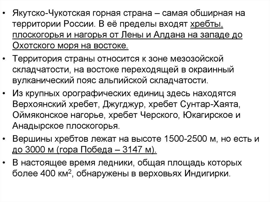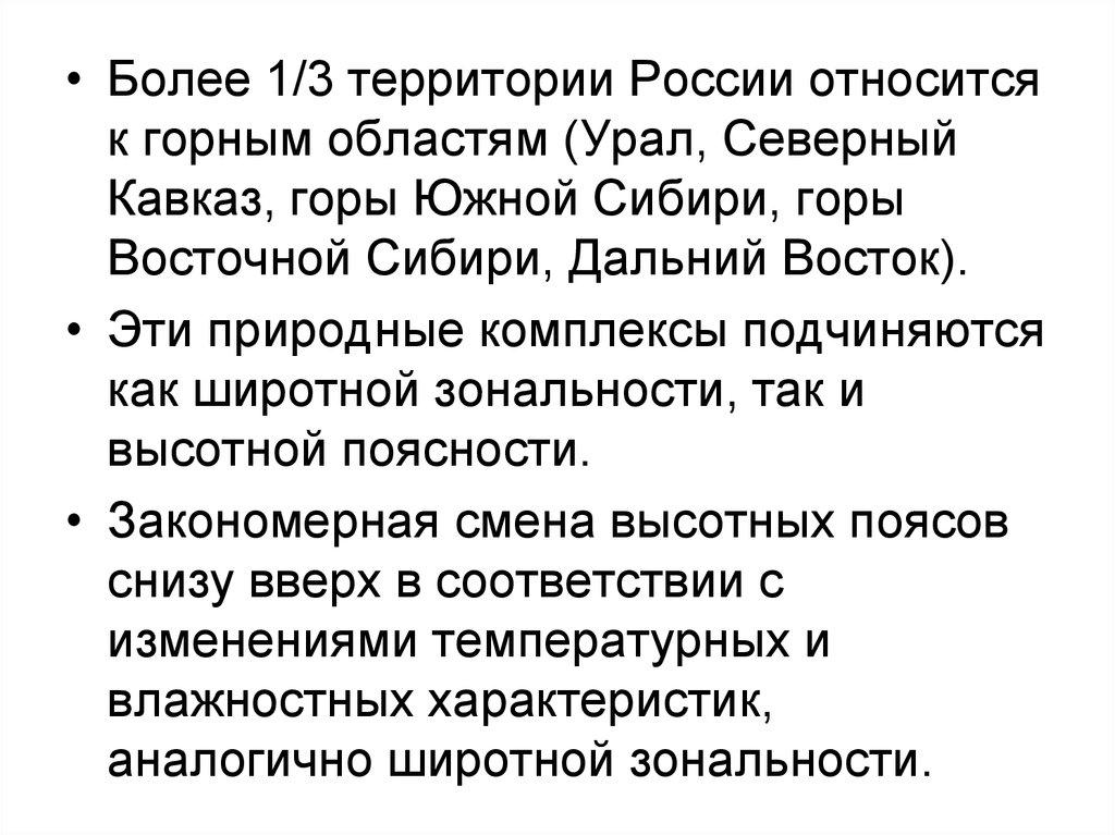 • Более 1/3 территории России относитсяк горным областям (Урал, Северный