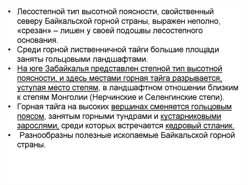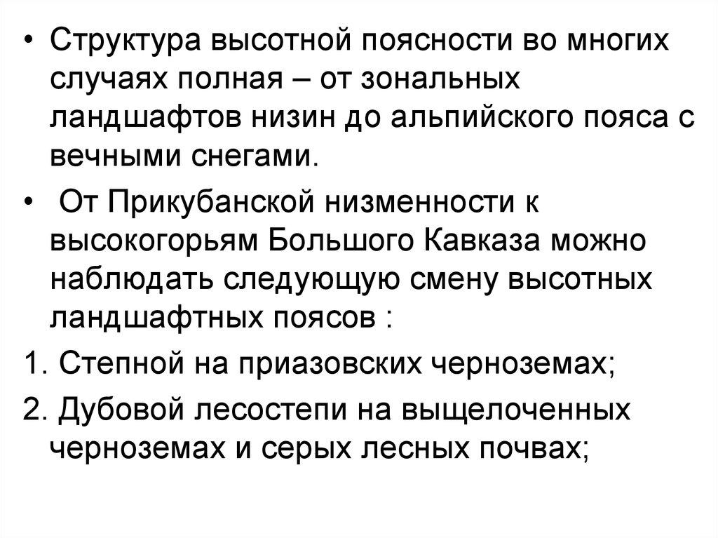 • Структура высотной поясности во многихслучаях полная – от зональных