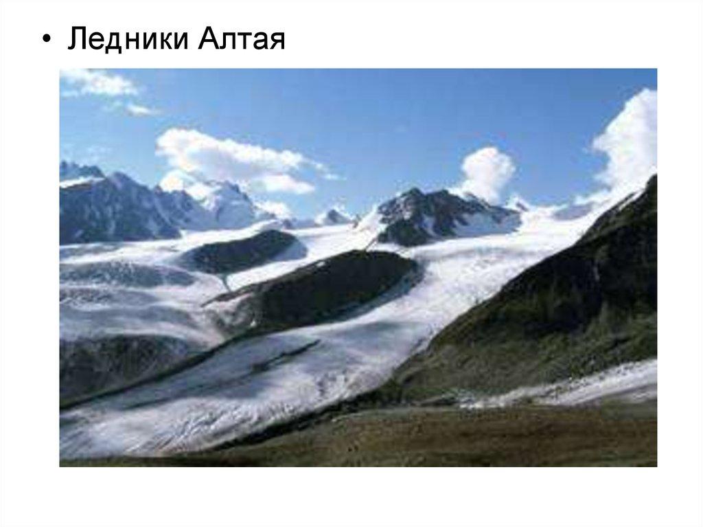 • Встречаются современные ледники карового и кароводолинного типа. Общая площадь современногооледенения немногим более 25 км2.