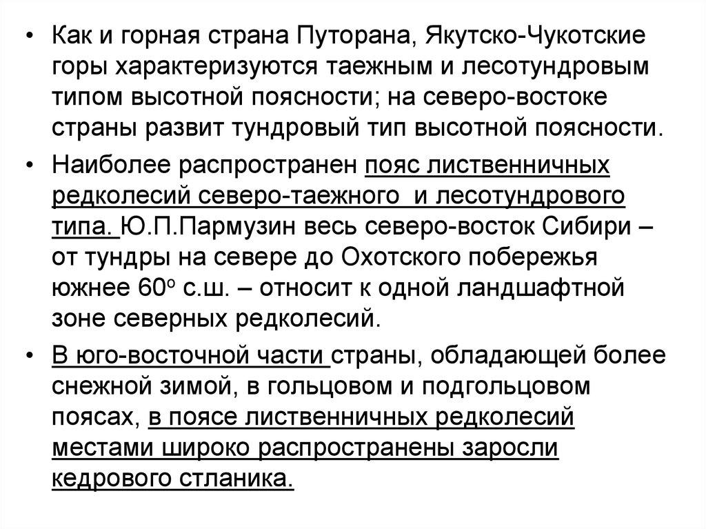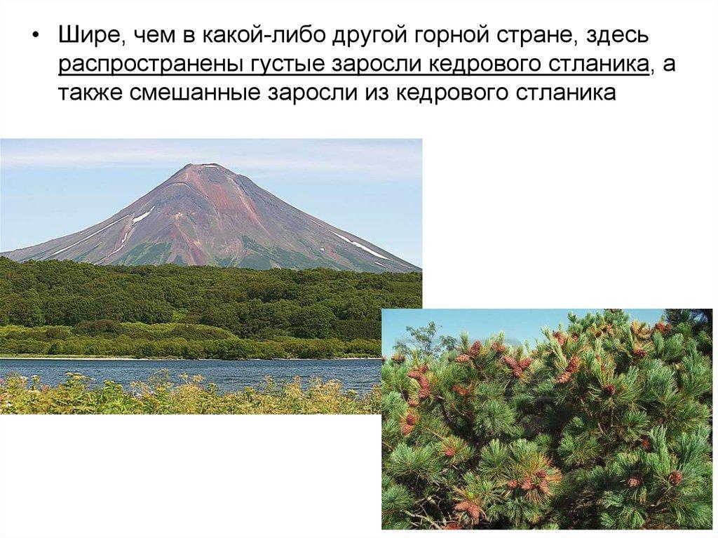 • Шире, чем в какой-либо другой горной стране, здесьраспространены густые заросли кедрового стланика, а