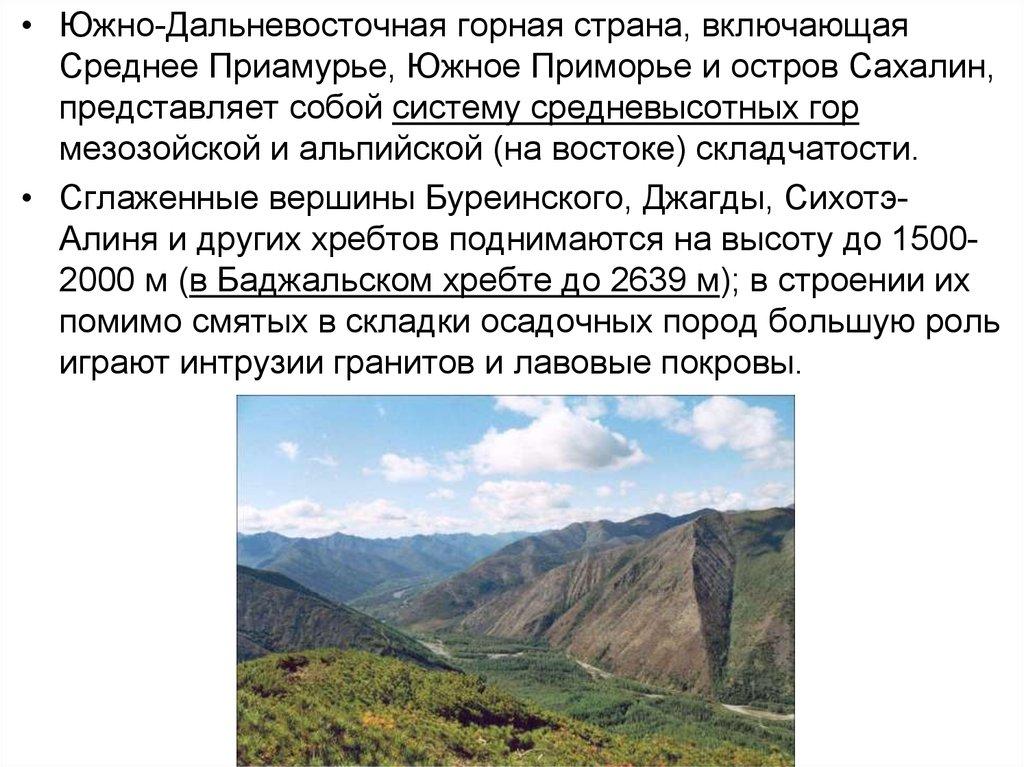 • В Южно-Дальневосточной горной стране сосредоточенцелый комплекс важных для народного хозяйства