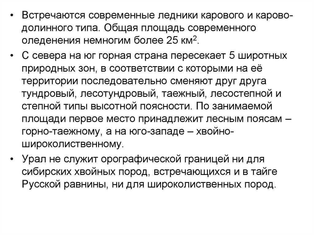 • Урал не служит орографической границей ни для
