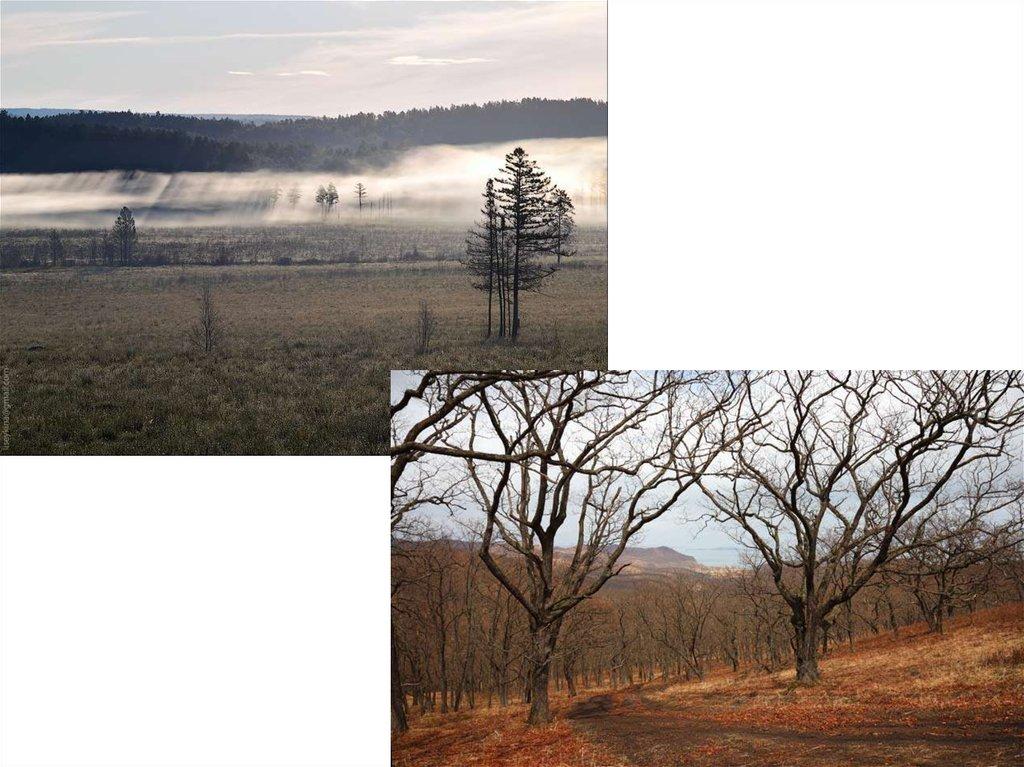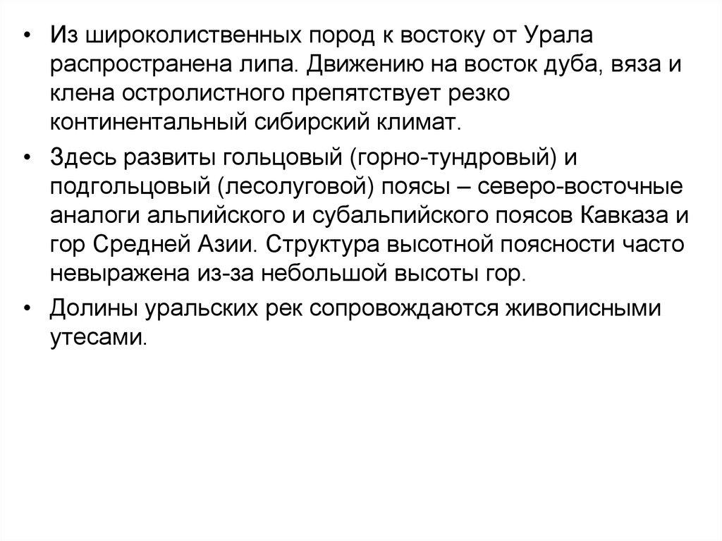 • Из широколиственных пород к востоку от Уралараспространена липа. Движению на восток дуба, вяза и