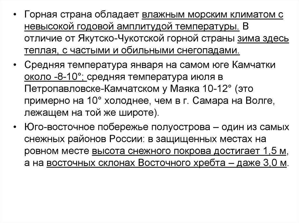 • Средняя температура января на самом юге Камчатки