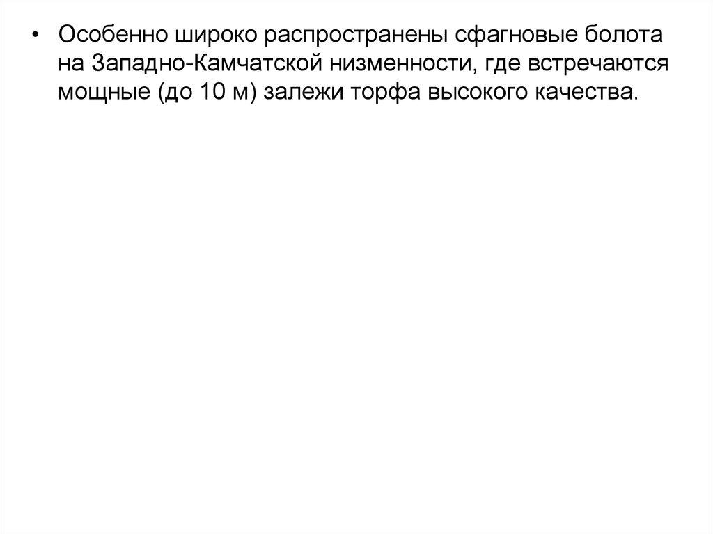 • Особенно широко распространены сфагновые болотана Западно-Камчатской низменности, где встречаются