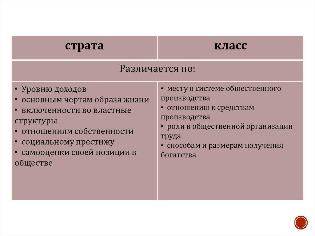5. Различие групп по принципу неравенства выражается в формировании социальных страт. Страта – большая группа людей, находящаяся