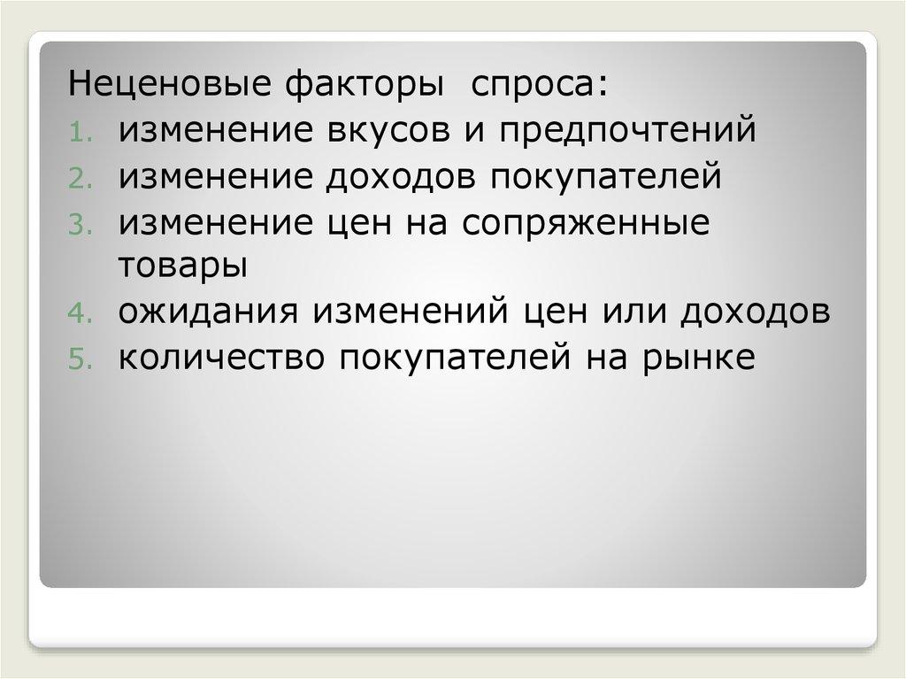 Неценовые факторы спроса:1. изменение вкусов и предпочтений