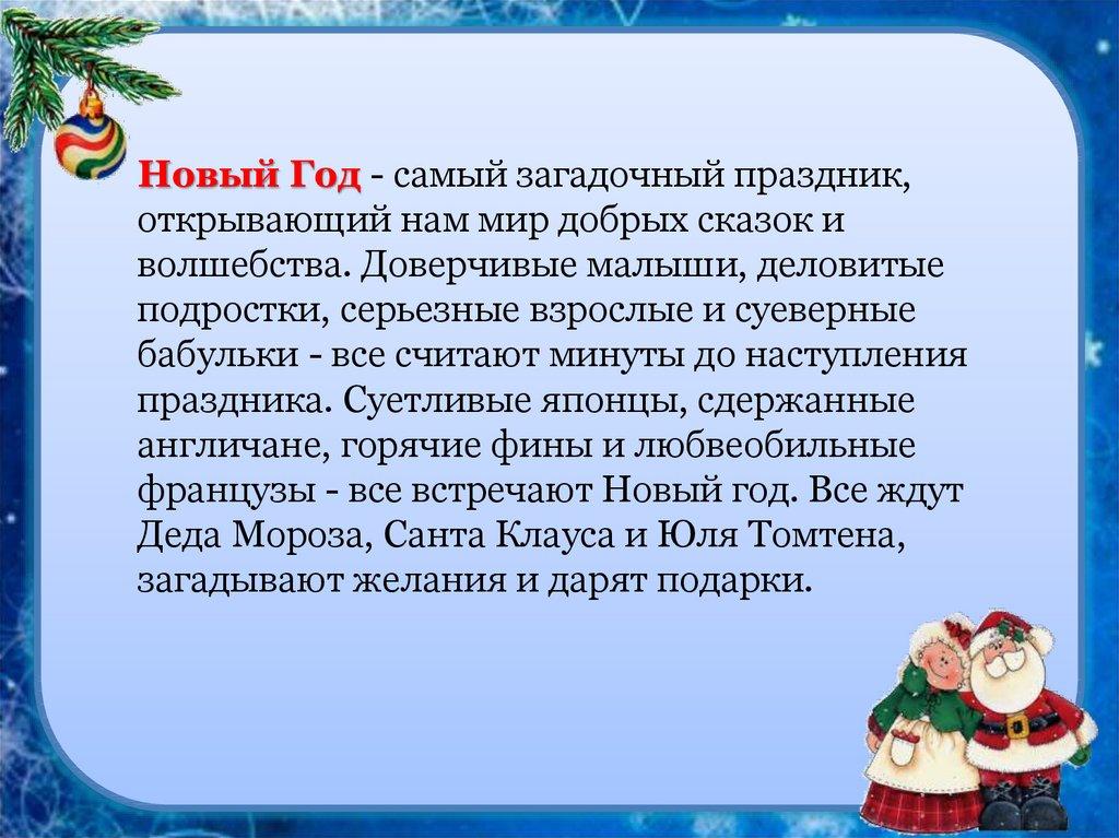 Новый Год - самый загадочный праздник,открывающий нам мир добрых сказок и