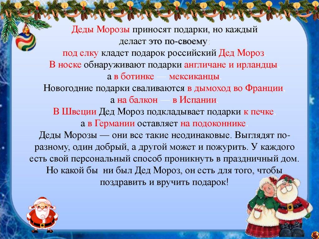 Деды Морозы приносят подарки, но каждыйделает это по-своему: