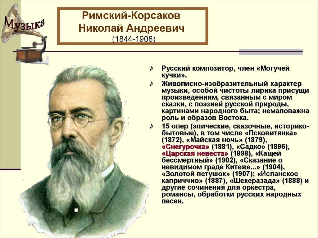 15 опер (эпические, сказочные, историкобытовые), в том числе «Псковитянка»