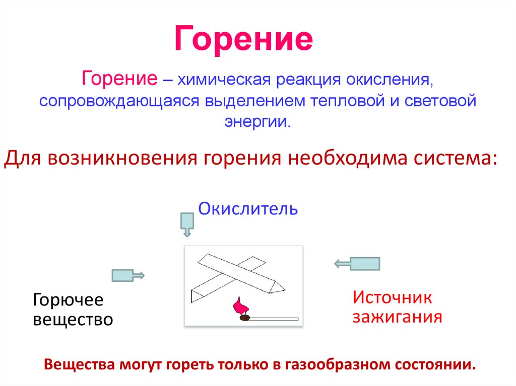 Горение- экзотермическая реакцияокисления вещества,