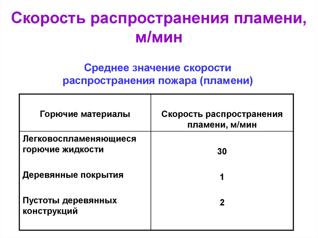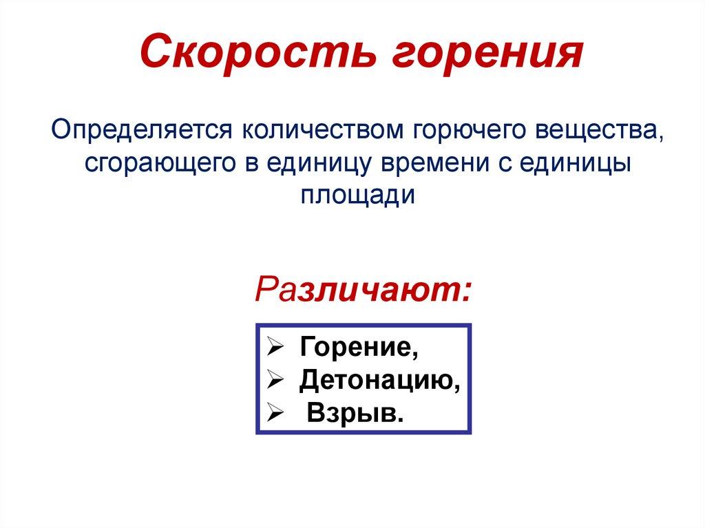 Скорость горенияОпределяется количеством горючего вещества,
