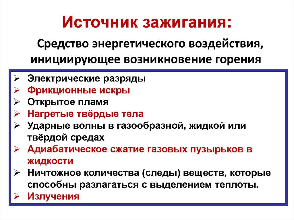 Источник зажигания:Средство энергетического воздействия,