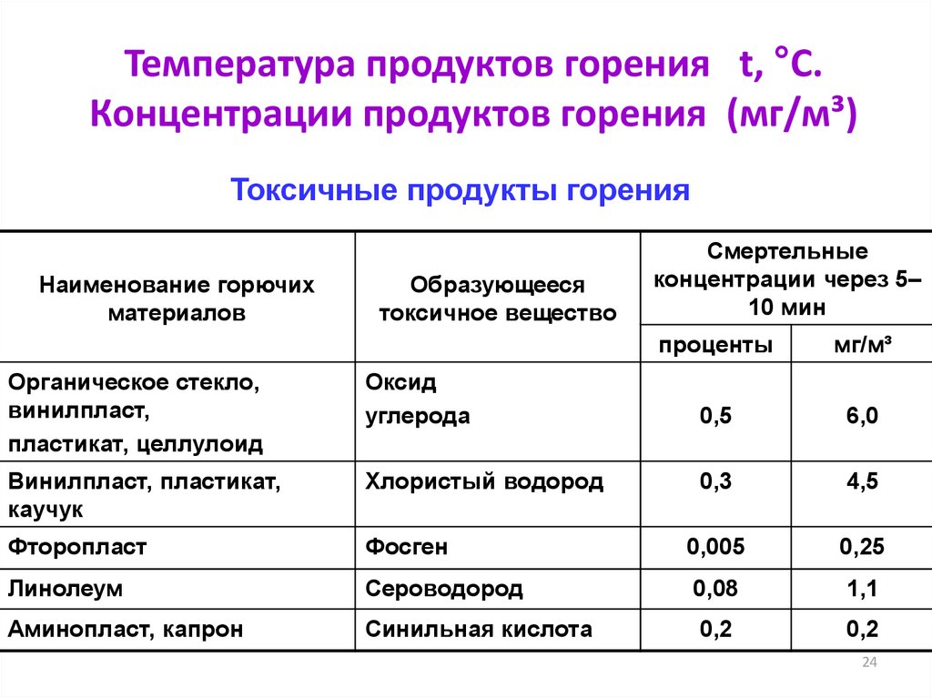 (тление), сопровождающееся образованием токсичных