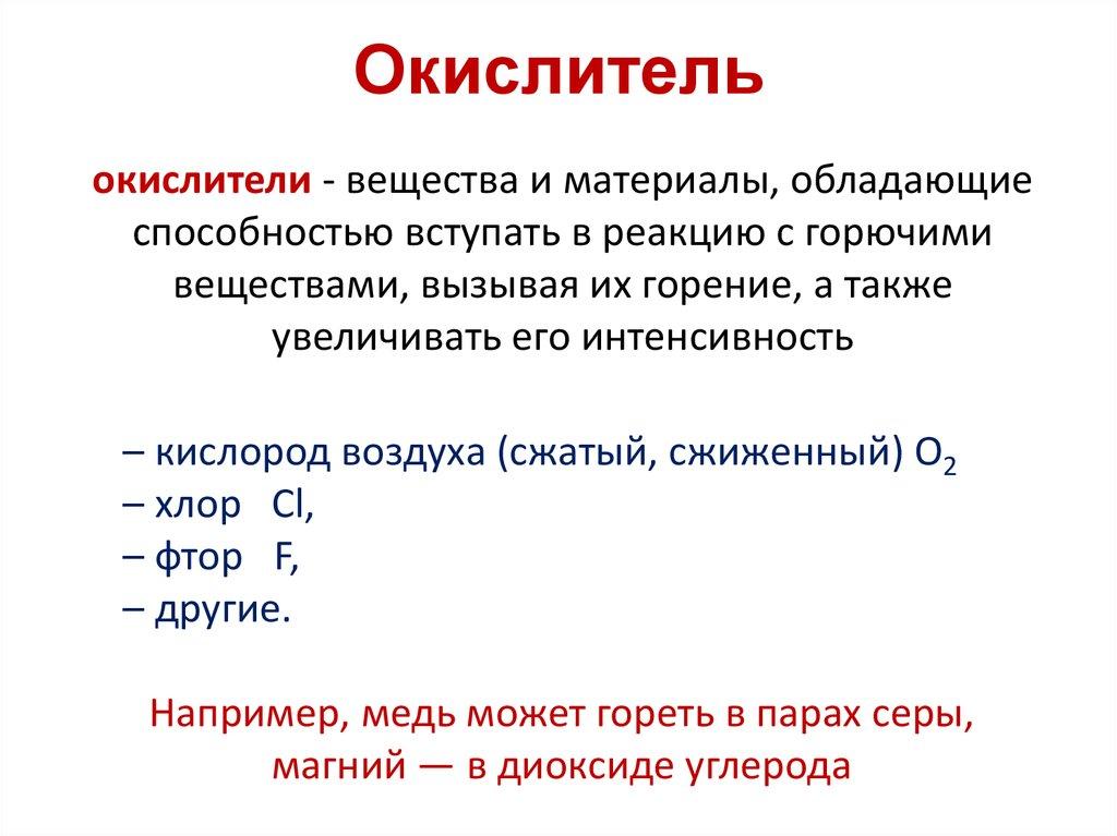 Окислительокислители - вещества и материалы, обладающие