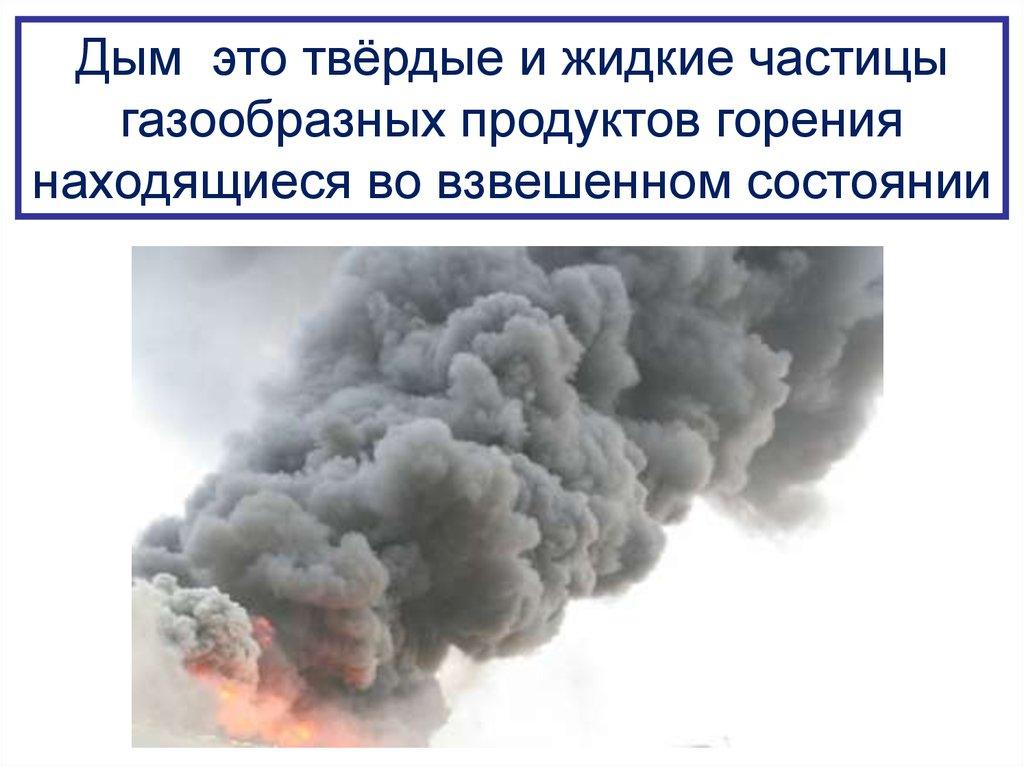 Дым это твёрдые и жидкие частицыгазообразных продуктов горения