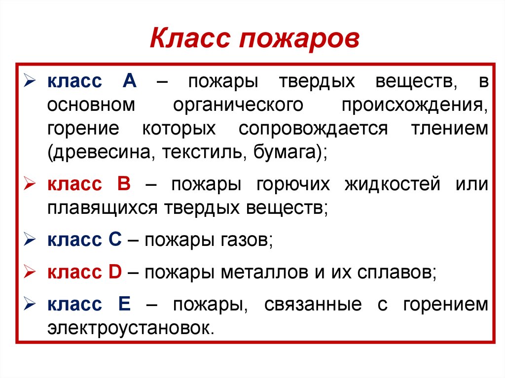 пожаров класса