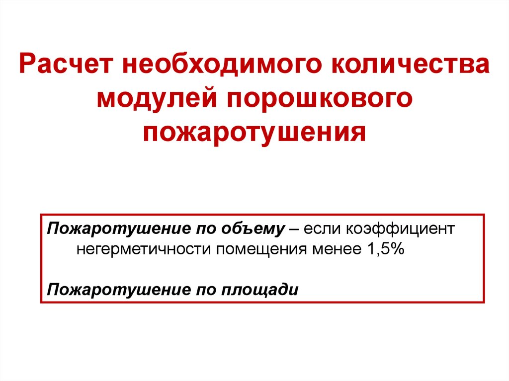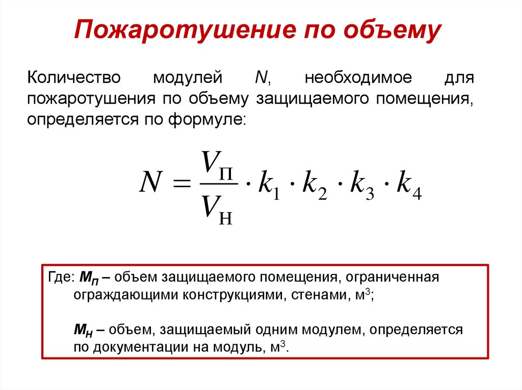 пожаротушения по объему защищаемого помещения,