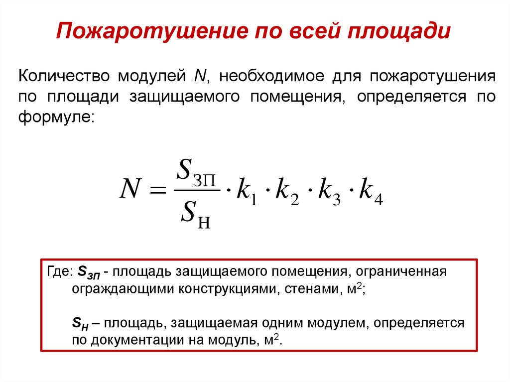 Пожаротушение по всей площадиКоличество модулей N, необходимое для пожаротушения