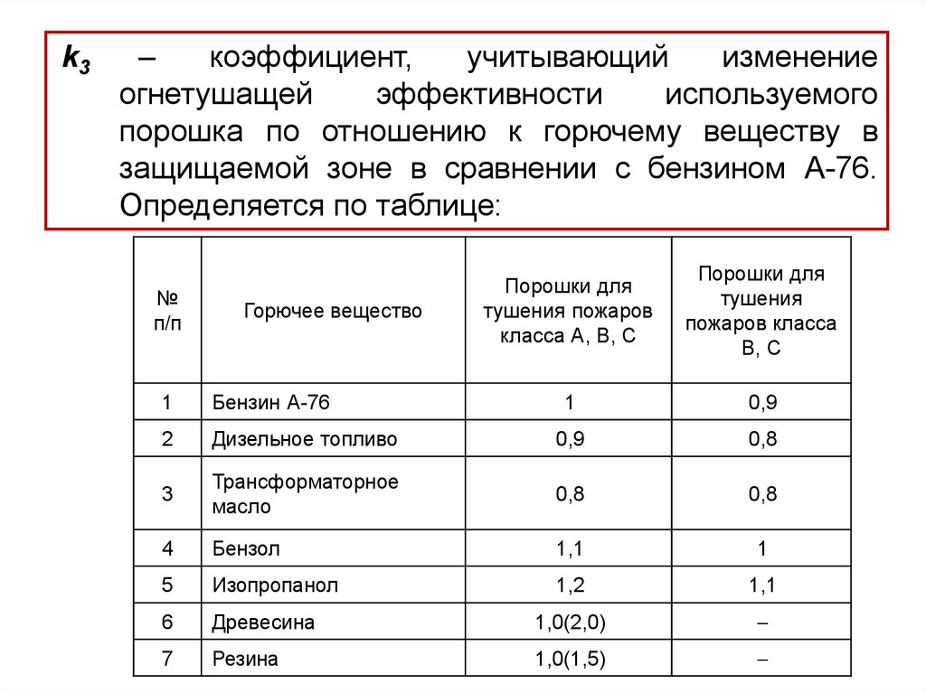 порошка по отношению к горючему веществу в