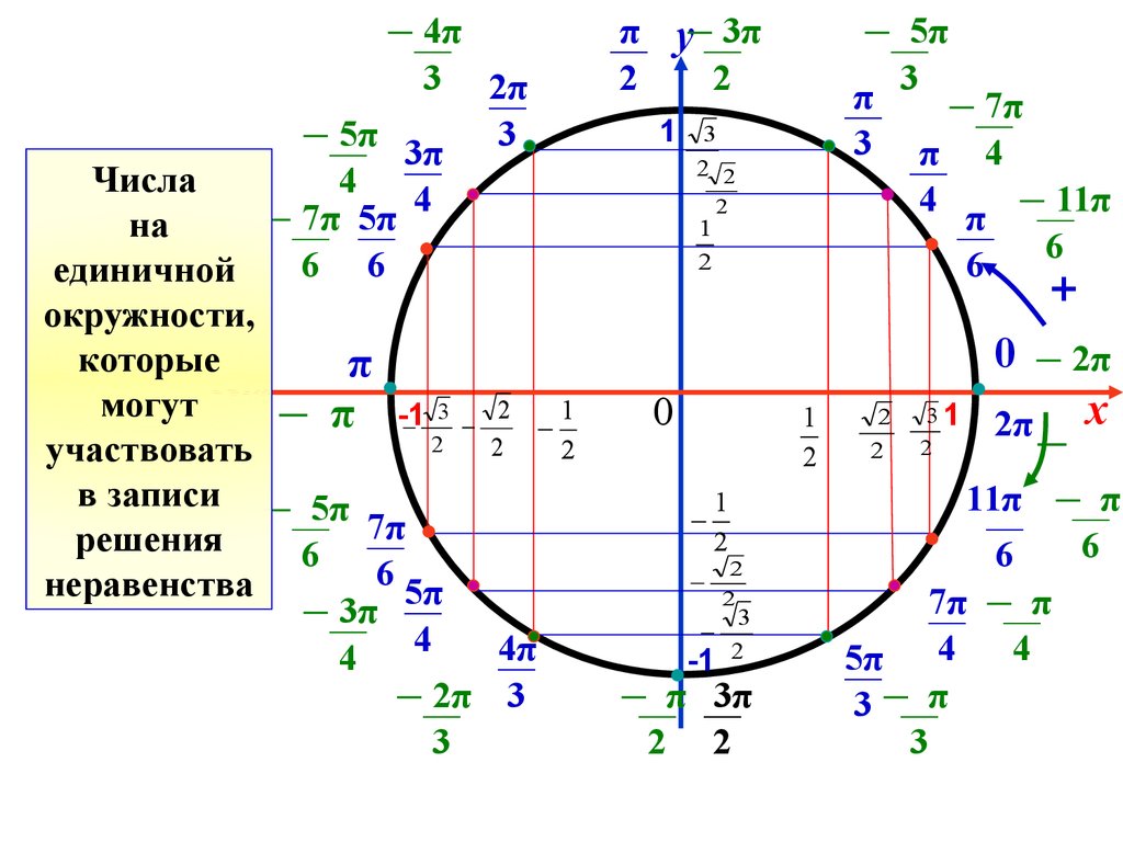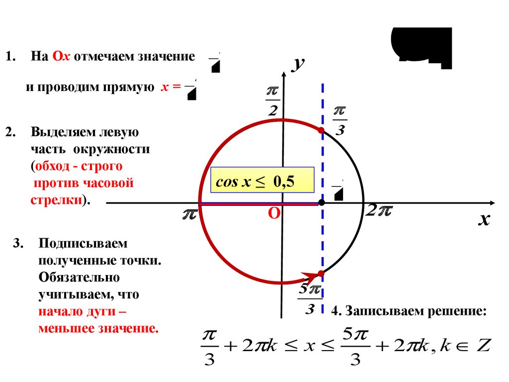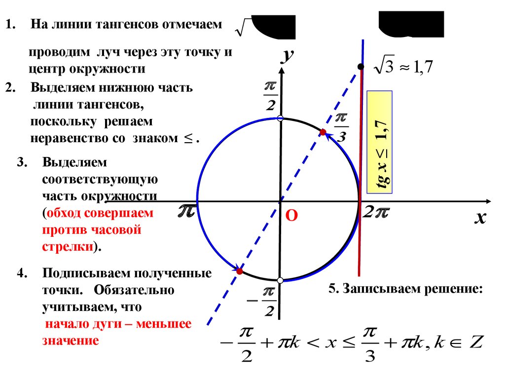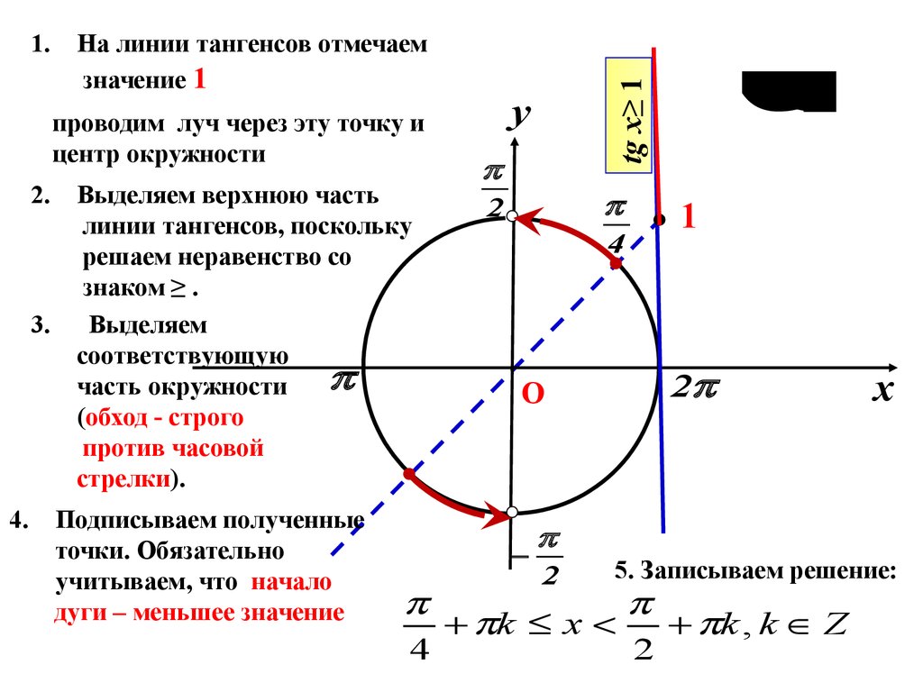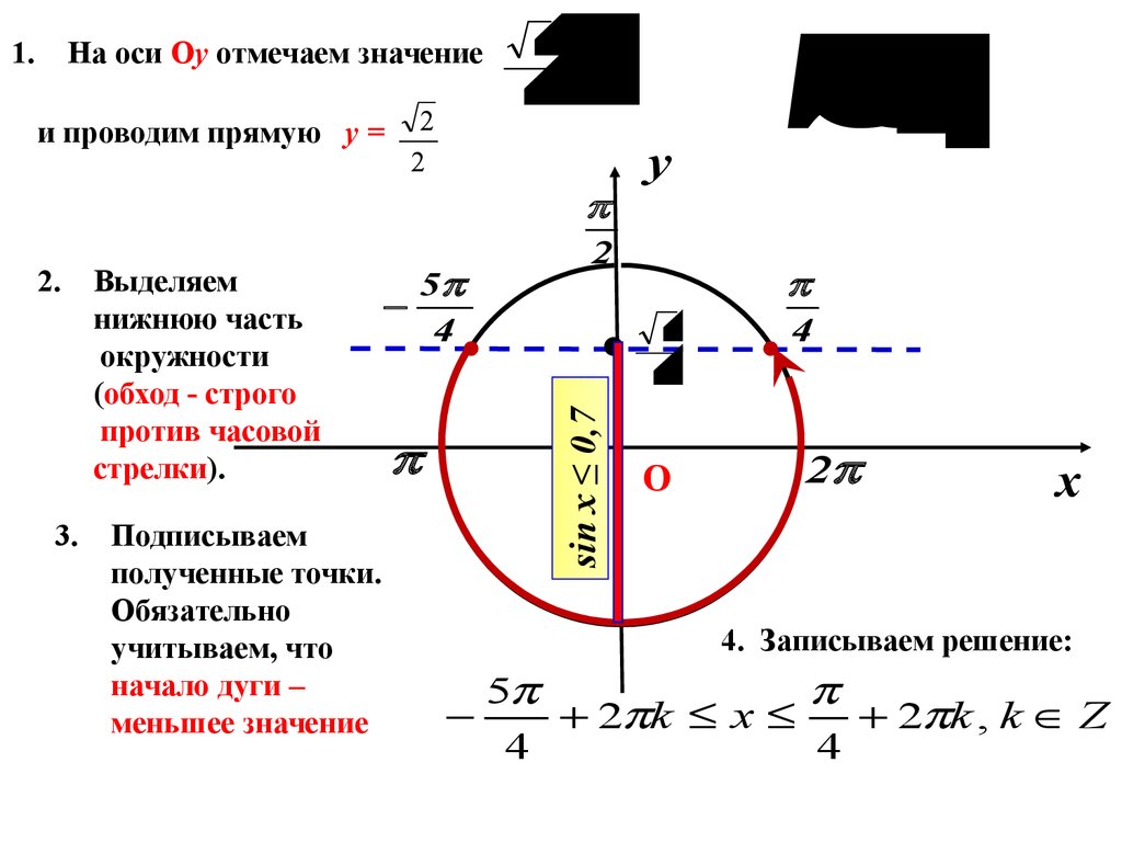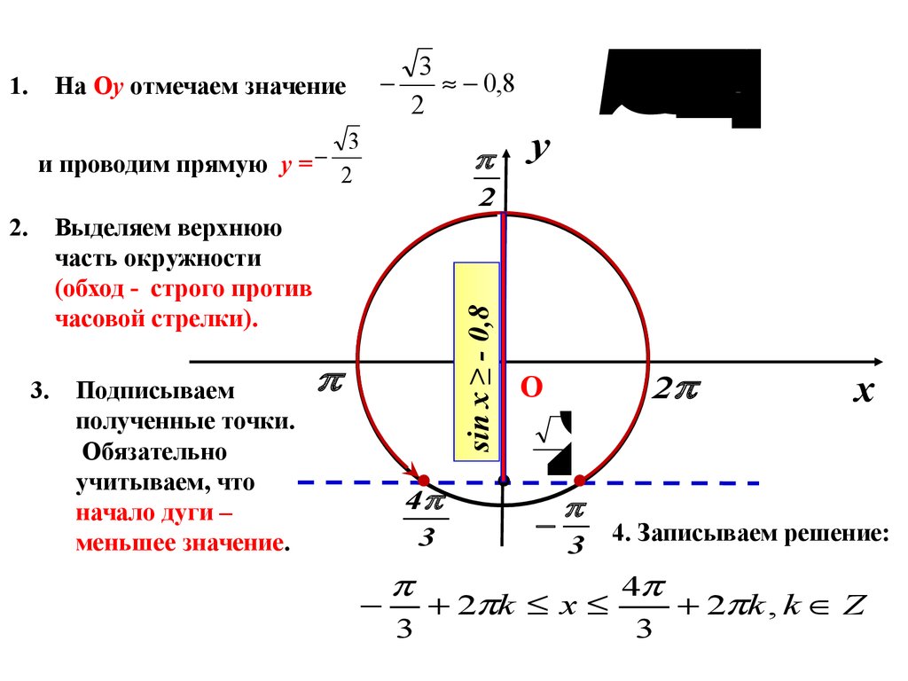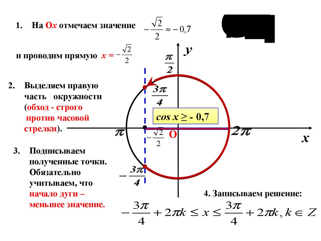 движения по дуге, записываем решение неравенства и ответ.